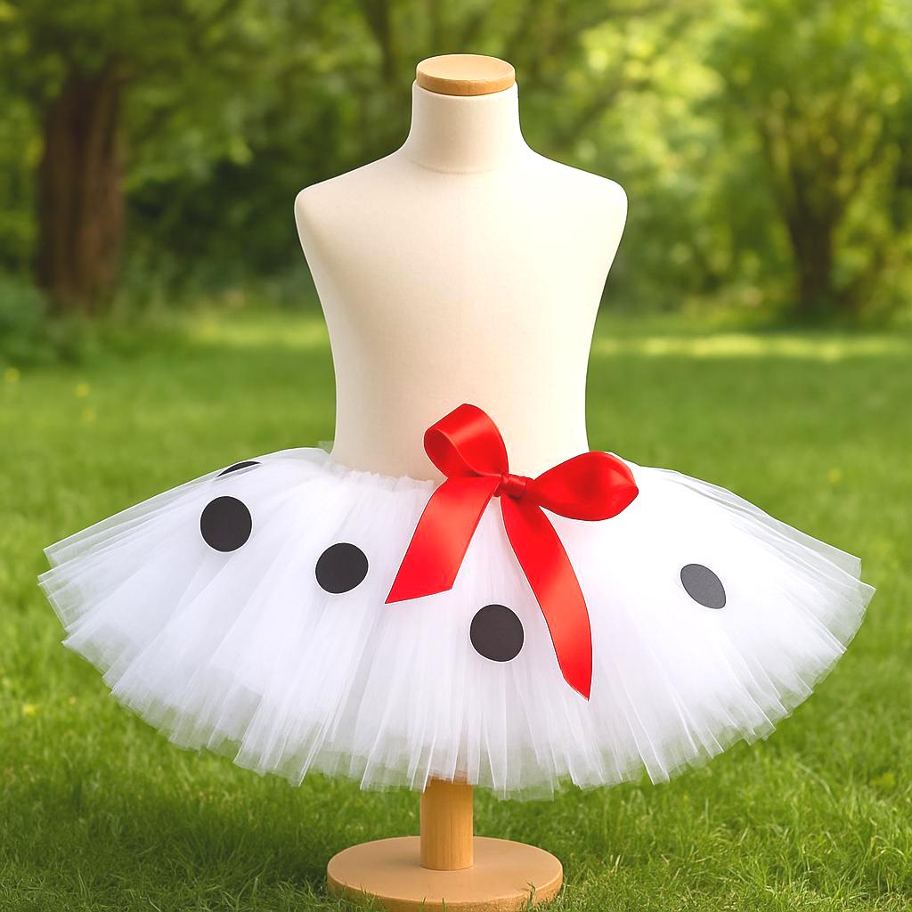 White tutu skirt with black spots + red bow 🎀
