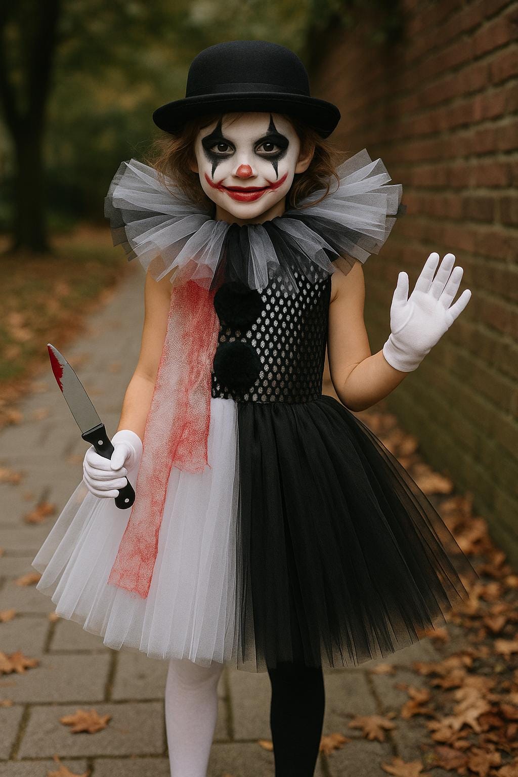 Step right into the circus of scares with this Kids Killer Clown Tutu Costume Set 🎪🤡👻! Perfect for Halloween, parties, school dress-up days, or photo shoots, this creepy yet stylish clown outfit is sure to stand out.
