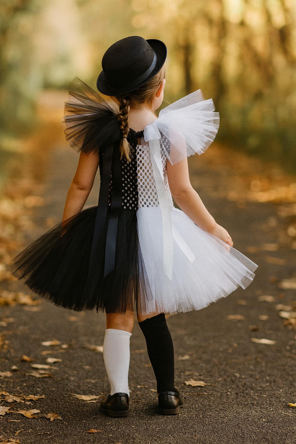 Black & white tutu dress with layered tulle skirt and pom-pom details 🎀