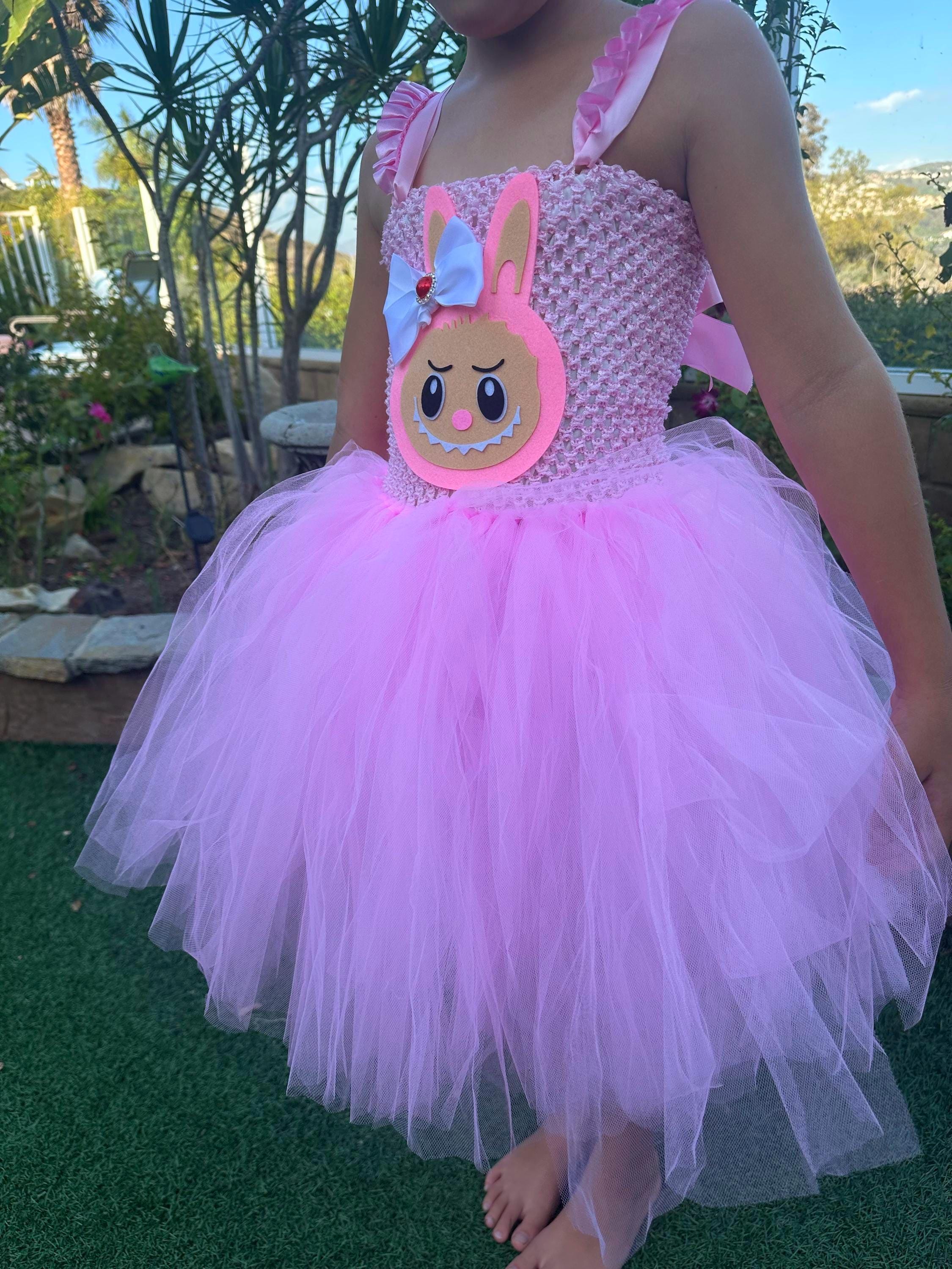 This magical pink tutu dress is inspired by the beloved Labubu character and designed for girls who love whimsical costumes, playful style, and dress-up fun. With layers of fluffy pink tulle, a stretchy crochet top, and the adorable Labubu face detail, this outfit is perfect for birthdays, parties, Halloween, cosplay, or everyday imaginative play.