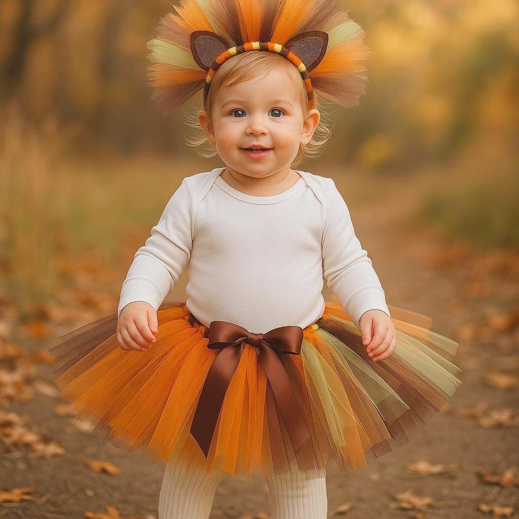 Includes: Lion Tutu Skirt + Tulle Mane Headband with Ears