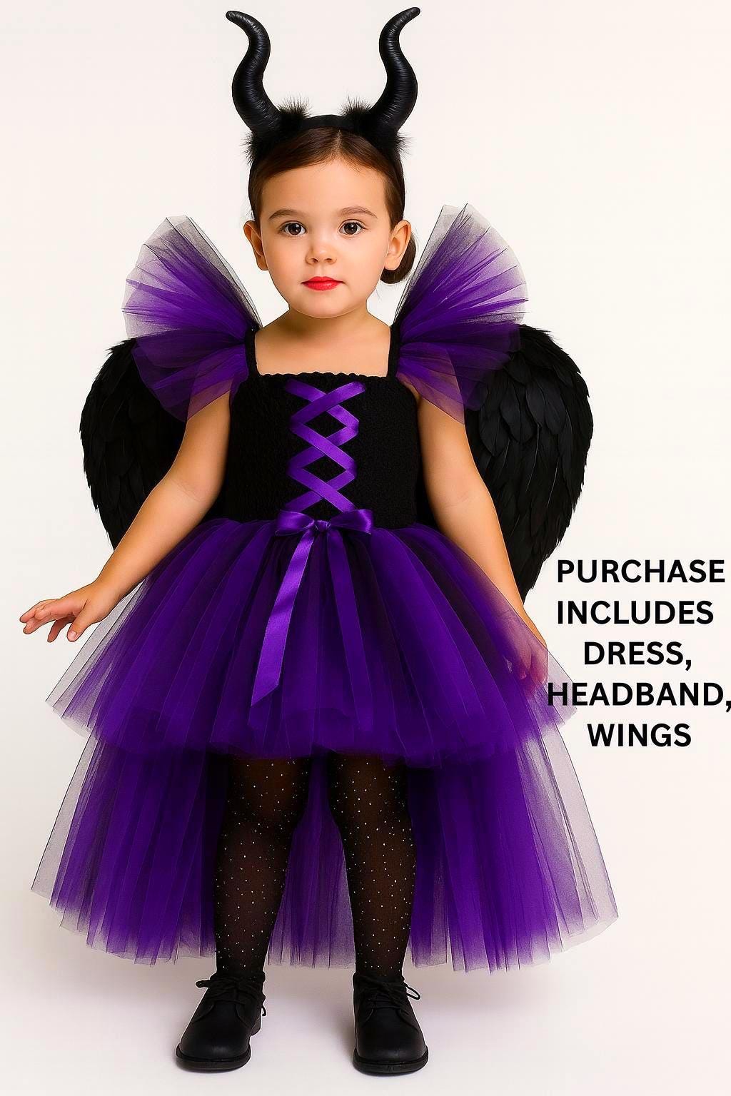 Maleficent Inspired Tutu Dress: Villain Costume with Horns & Wings