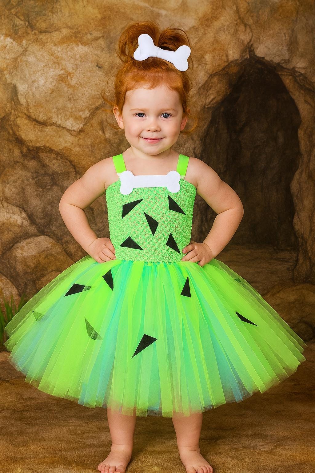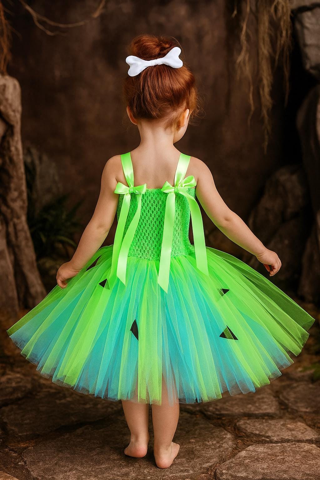 💚✨ Step back into the Stone Age with this adorable Pebbles-inspired tutu dress – the perfect costume for your little cave cutie! Inspired by everyone’s favorite character from The Flintstones, this bright lime green dress is full of fun, charm, and playful details that make it a must-have for dress-up and special occasions.